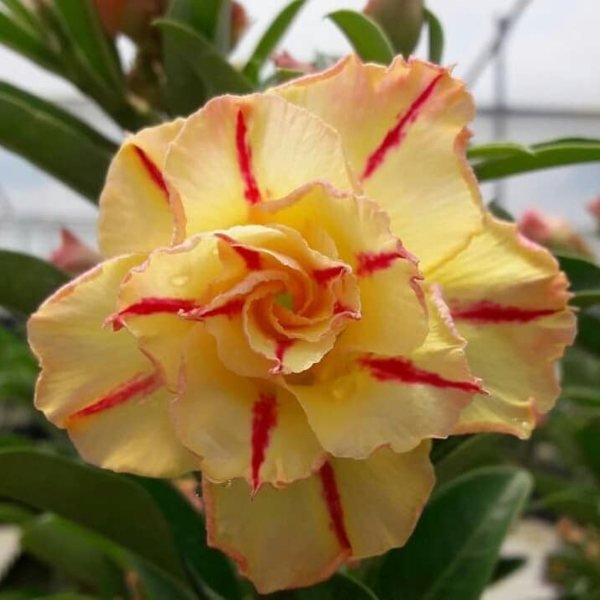 - Flowers: Adenium Lucky Gold produces beautiful, trumpet-shaped flowers in various colors, including shades of pink, red, and white. The flowers often have a contrasting center, enhancing their visual impact.