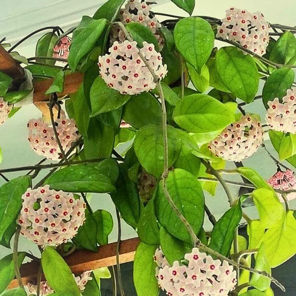 The real showstopper of the Hoya carnosa appears when it blooms. It produces clusters of star-shaped flowers in shades of pink, ranging from light pink to a deeper rose. These flowers are small, typically around 1-2 cm across, but they pack a punch with their sweet fragrance. The scent can fill a room and is often described as pleasant and honey-like.