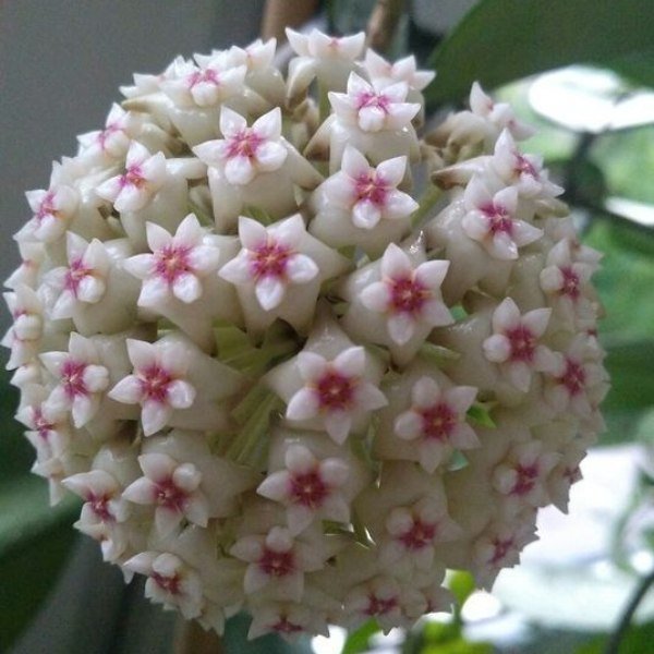With the right care, this plant produces clusters of small, star-shaped flowers. These flowers are white with pink centers and have a soft, sweet fragrance. The blooms appear on long stems and can last for weeks, adding extra charm to this already beautiful plant.