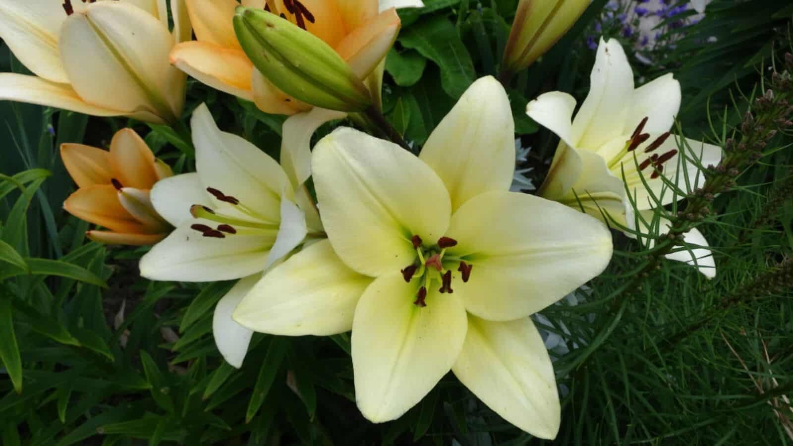 Orienpet lilies are a hybrid between Oriental and trumpet lilies. They combine the large, fragrant flowers of Oriental lilies with the tall, sturdy stems of trumpet lilies. Orienpet lilies bloom in mid to late summer and come in a variety of colors, including white, pink, and yellow.